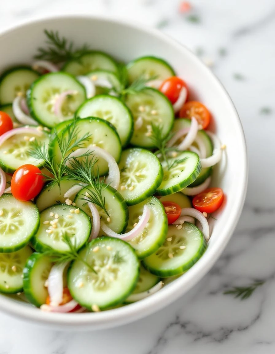 - Let the salad sit in the fridge for at least 30 minutes, allowing the flavors to meld and the cucumbers to stay crisp and cool.