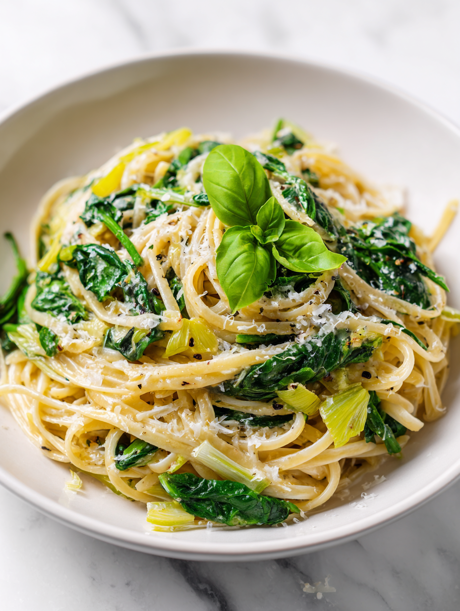 This recipe was born out of a lazy Sunday afternoon when I was rummaging through my fridge and found a lonely leek and a bag of wilted spinach. Instead of tossing them out, I decided to see if they could become something more than just ingredients—maybe a pasta dish that’s honest and simple. The aroma of sautéed leeks filling the kitchen reminded me of childhood comfort foods, where humble ingredients come together to create something unexpectedly warm. It’s a dish that feels like a small act of kindness, made with what’s on hand and cooked with care.