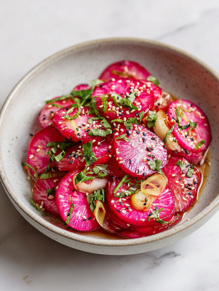 - Optional chili flakes: I sprinkle some for heat, but it’s the contrast with the sweet, mellow radishes that makes this dish lively. Adjust based on your heat tolerance.