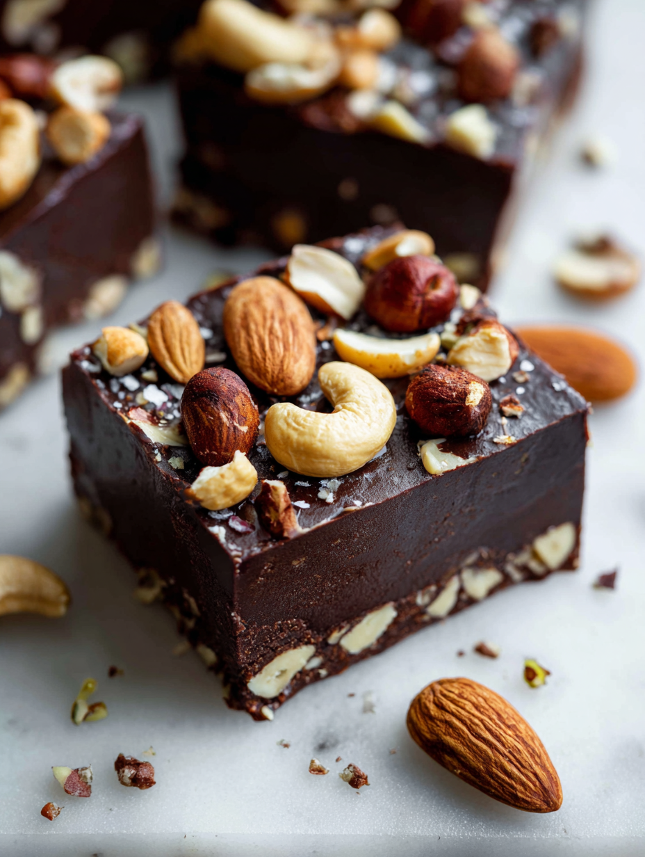 Transfer the chocolate-nut mixture into your prepared dish. Use the back of a spatula to press firmly and evenly into the corners, smoothing the top for a flat surface.
