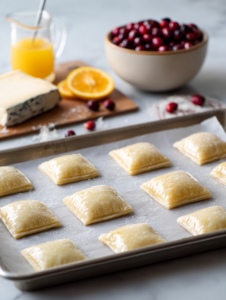 Next, you’ll need a good quality Brie cheese. Cut the Brie into small cubes or thin slices, ensuring each pocket will be generously filled. The Brie adds a rich, velvety texture that melts beautifully during baking, creating a luscious contrast to the tart cranberries. Speaking of cranberries, fresh or frozen cranberries both work well. If you’re using frozen, thaw them beforehand. Combine the cranberries with a touch of sugar, orange zest, and a splash of orange juice or balsamic vinegar to enhance their natural tartness and add depth of flavor.
