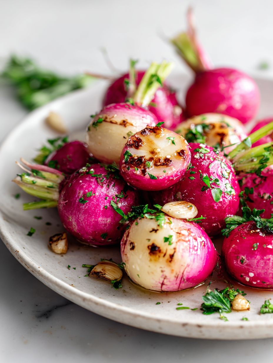 - Optional herbs: A sprinkle of thyme or parsley can brighten the dish—fresh herbs add a fresh, slightly grassy contrast to the smoky radishes.